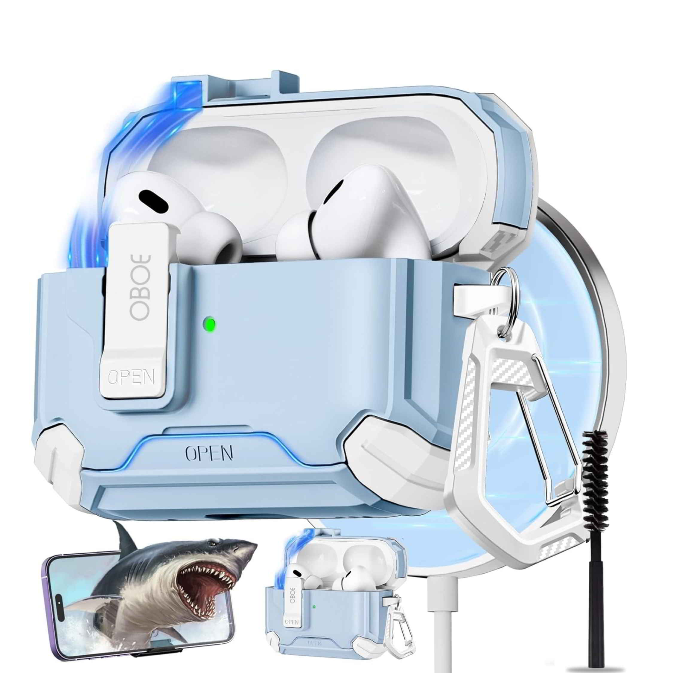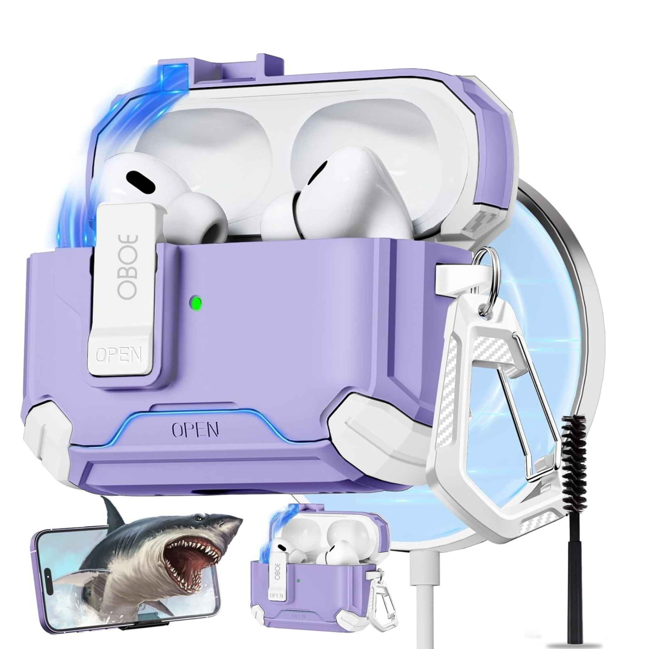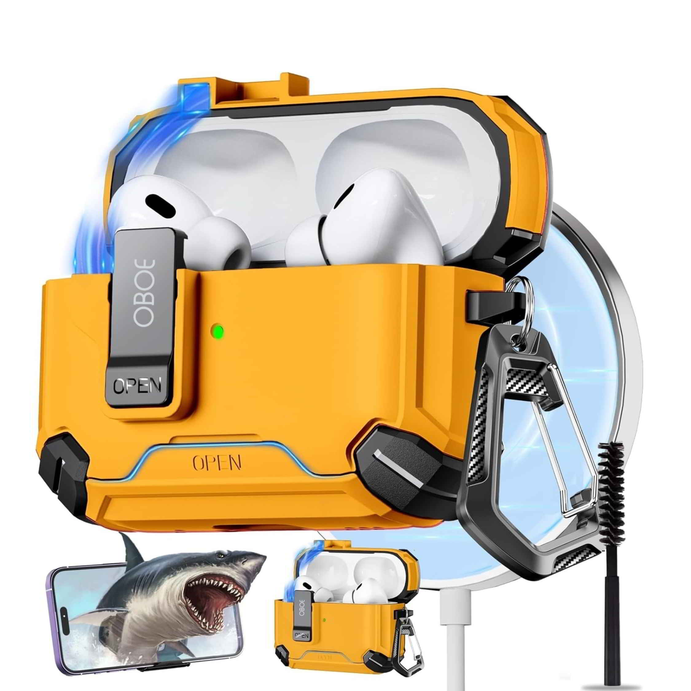 Oboe Tough Case For Apple Airpods Pro 2 Case (2023/2022/2019, 2nd/1st Gen), Magsafe Ready Case with Phone Stand, Full Protection Cover, Magnetic Lock & Keyring