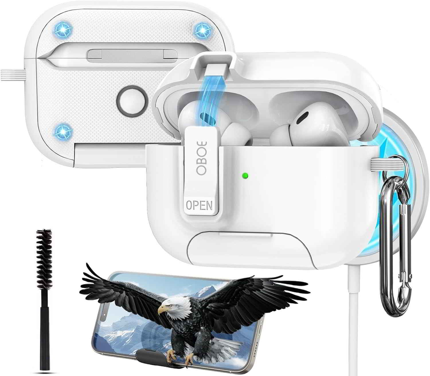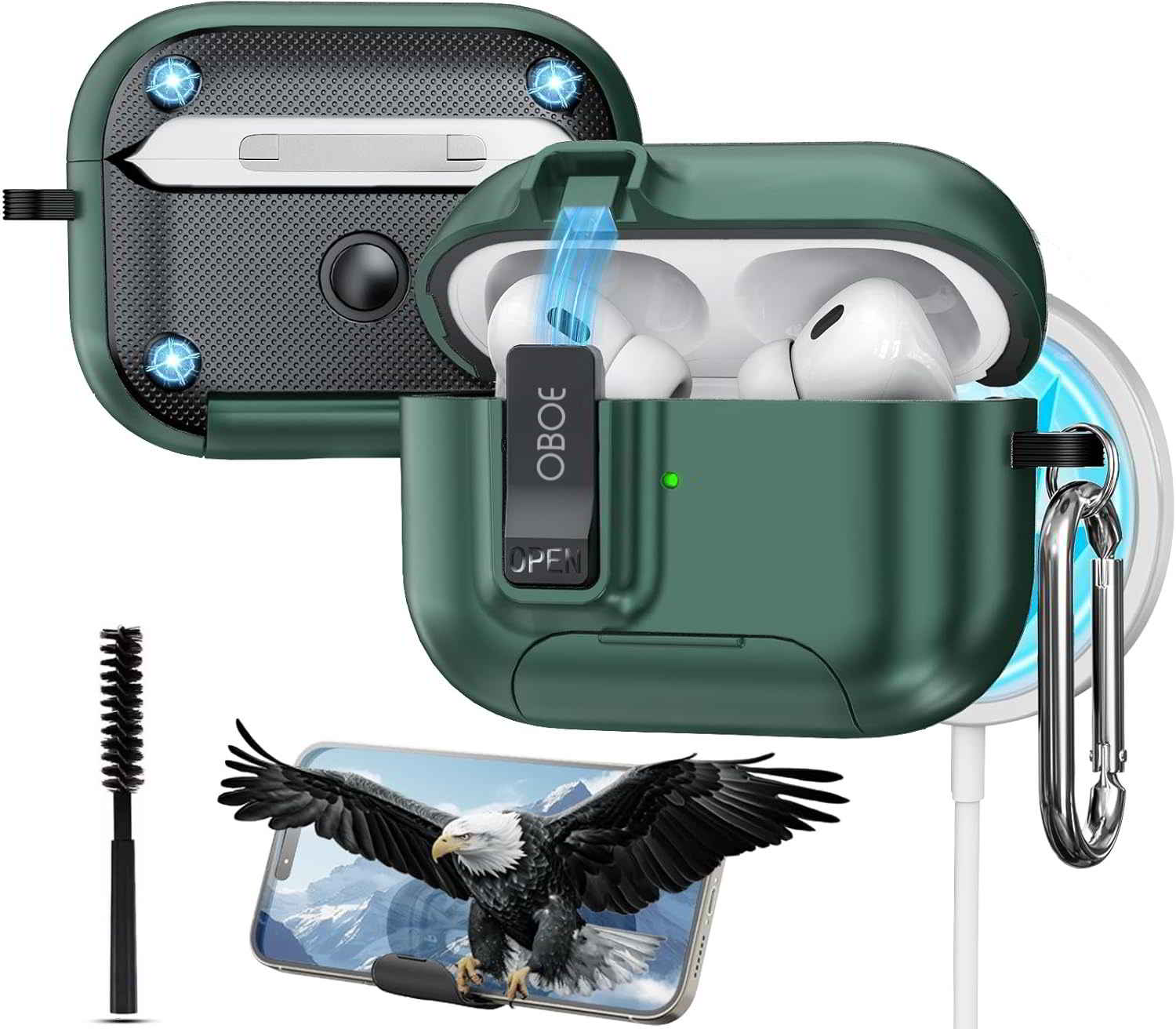 Oboe Shield Pro Case 'Compatible with' Apple Airpods Pro 2 Case (2023/2022/2019, 2nd/1st Gen), Magsafe Ready Case with Phone Stand, Full Protection Cover, Magnetic Lock & Keyring